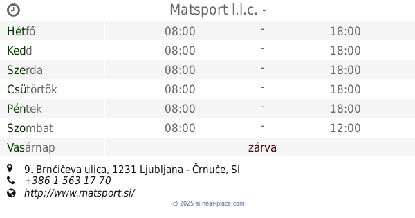 | Szombat | zárva | |||||